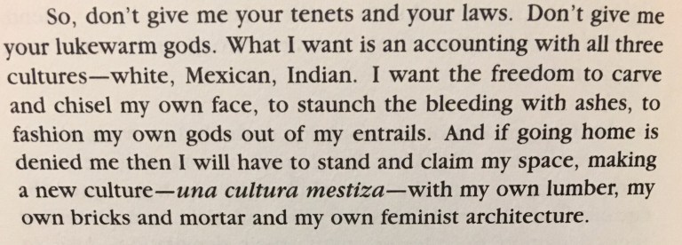 September 29, 2018 The freedom to carve and chisel my own face -“Borderlands”, by Gloria Anzaldúa Like Loading...