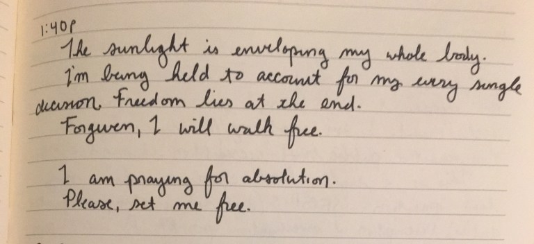 Praying for absolution.
