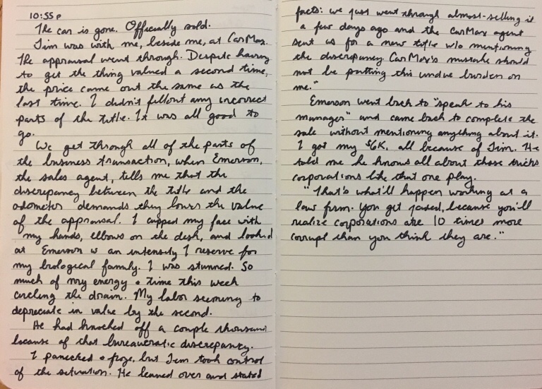 When the day came to sell my car last summer, he offered to drive me home CarMax, seeing as I’d have no other way without the vehicle.