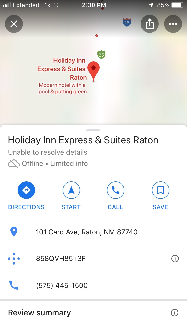 Hi, all, I pulled over at a gas station to talk to some locals. Apparently the Raton Pass is near impassable and there’s a whole ton of overturned cars.