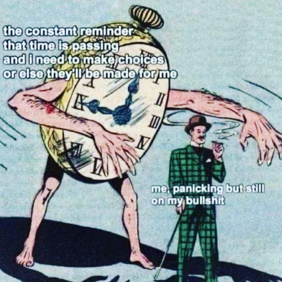 Me, panicking but still on my bullshit